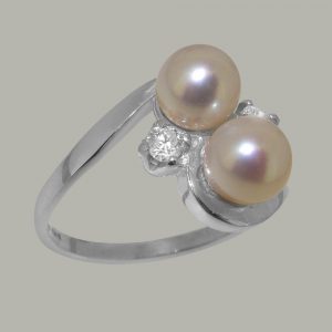925 Sterling Silver Cultured Pearl & Diamond Womens Dress Ring