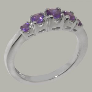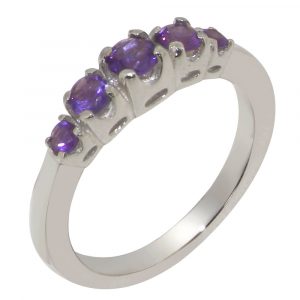 Solid White Gold Natural Amethyst & Cubic Zirconia Womens Trilogy Ring