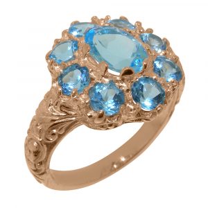 Solid Rose Gold Natural Blue Topaz & Cubic Zirconia Womens Cluster Ring
