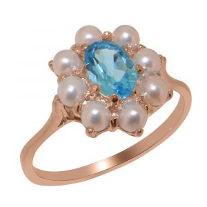 Solid 925 Sterling Silver Natural Blue Topaz Womens Cluster Ring