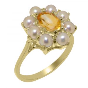 Solid Rose Gold Natural Citrine & Cultured Pearl Womens Cluster Ring