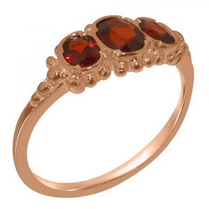 Solid Yellow Gold Natural Garnet & Cubic Zirconia Womens Trilogy Ring