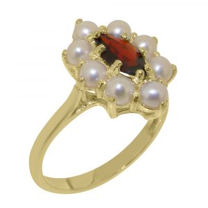 Solid Yellow Gold Natural Garnet & Cultured Pearl Womens Cluster Ring