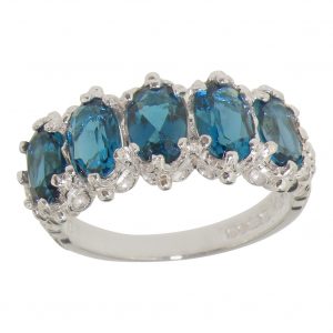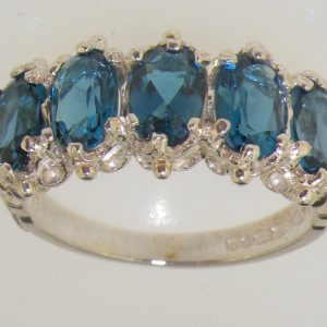 Solid White Gold Natural London Blue Topaz & Cultured Pearl Womens Cluster Ring
