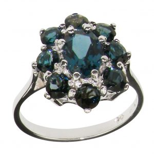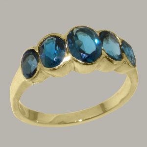 Solid Yellow Gold Natural London Blue Topaz & Opal Womens Trilogy Ring