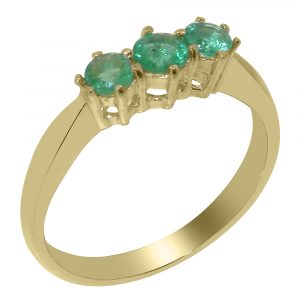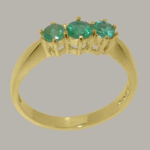 Solid Yellow Gold Natural Emerald & Cubic Zirconia Womens Trilogy Ring