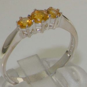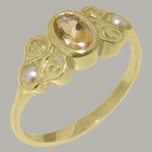 Solid Yellow Gold Natural Citrine & Cultured Pearl Womens Trilogy Ring