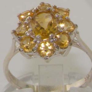 Solid 925 Sterling Silver Natural Citrine & Cultured Pearl Womens Cluster Ring