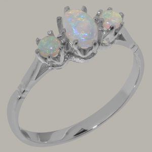 Solid 925 Sterling Silver Natural London Blue Topaz & Opal Womens Trilogy Ring