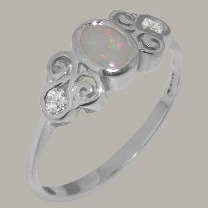 Solid 925 Sterling Silver Natural Opal & Cubic Zirconia Womens Trilogy Ring