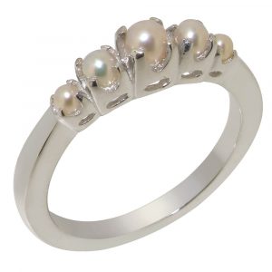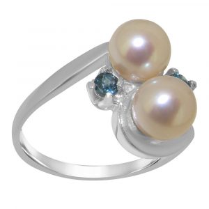 White Gold Cultured Pearl & London Blue Topaz Womens Dress Ring