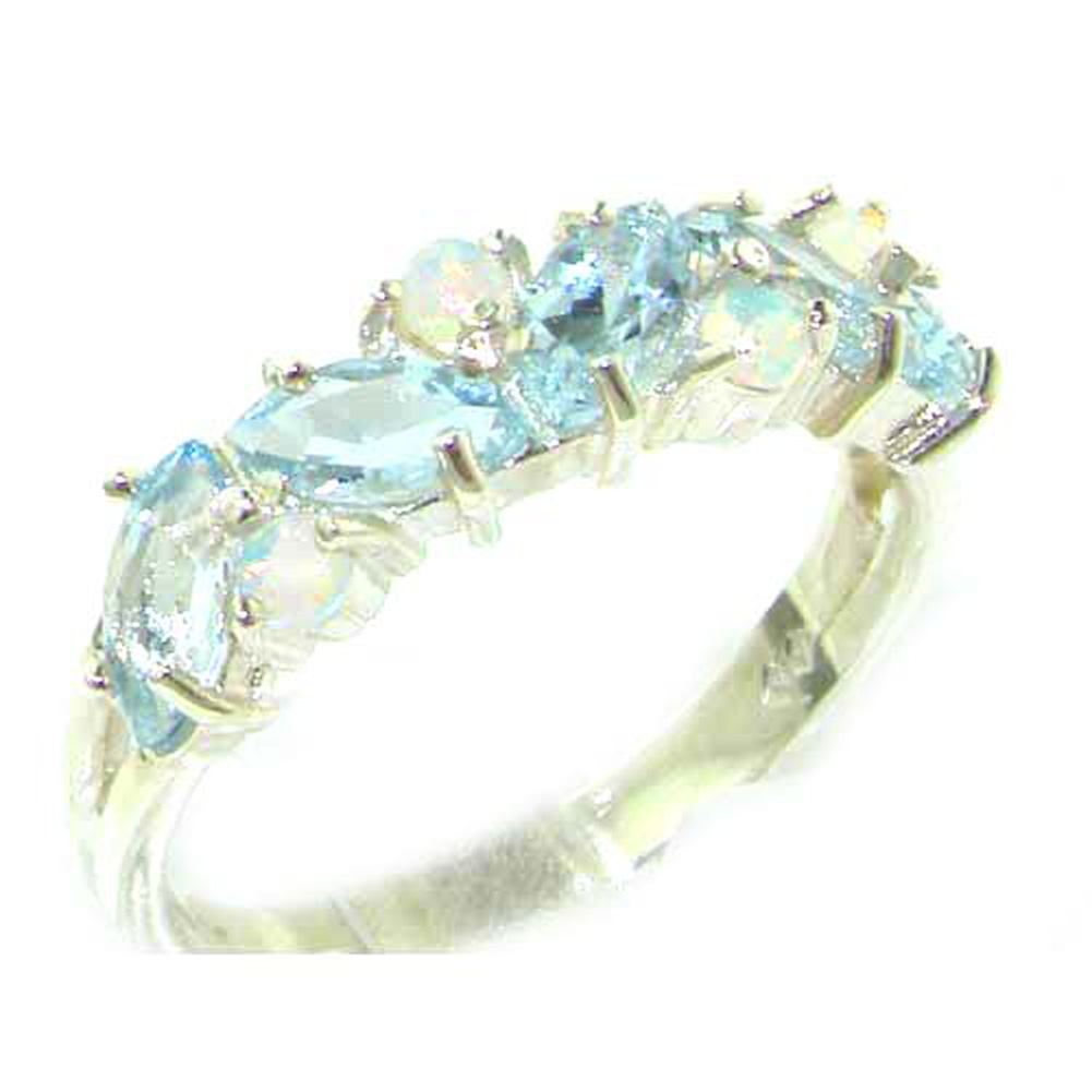 White Gold Natural Aquamarine & Opal Womens Eternity Ring