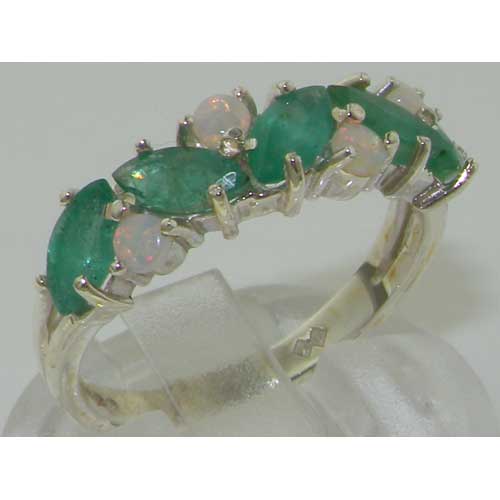 White Gold Natural Emerald & Opal Womens Eternity Ring