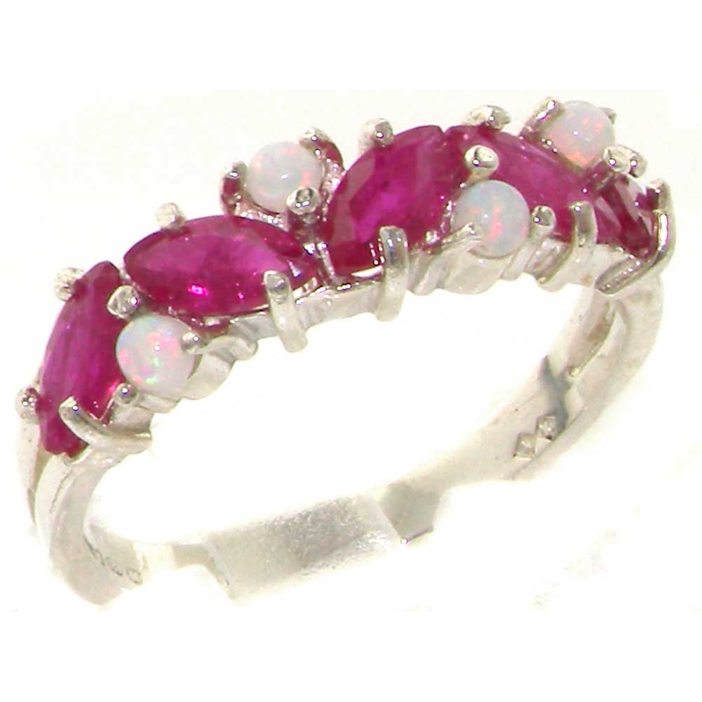 White Gold Natural Ruby & Opal Womens Eternity Ring