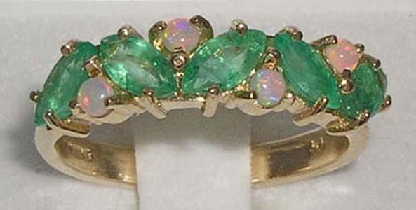 Yellow Gold Natural Emerald & Opal Womens Eternity Ring