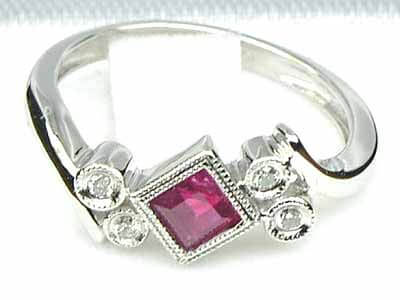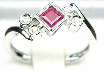 18ct White Gold Princess Cut Ruby & Diamond Ring