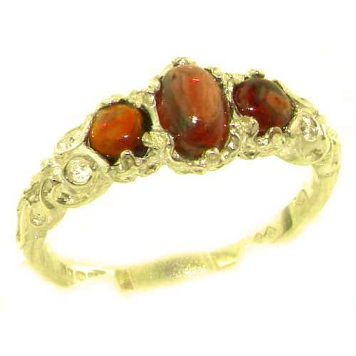 Ladies Solid 14ct Yellow Gold Natural Cabochon Garnet English Victorian Trilogy Ring
