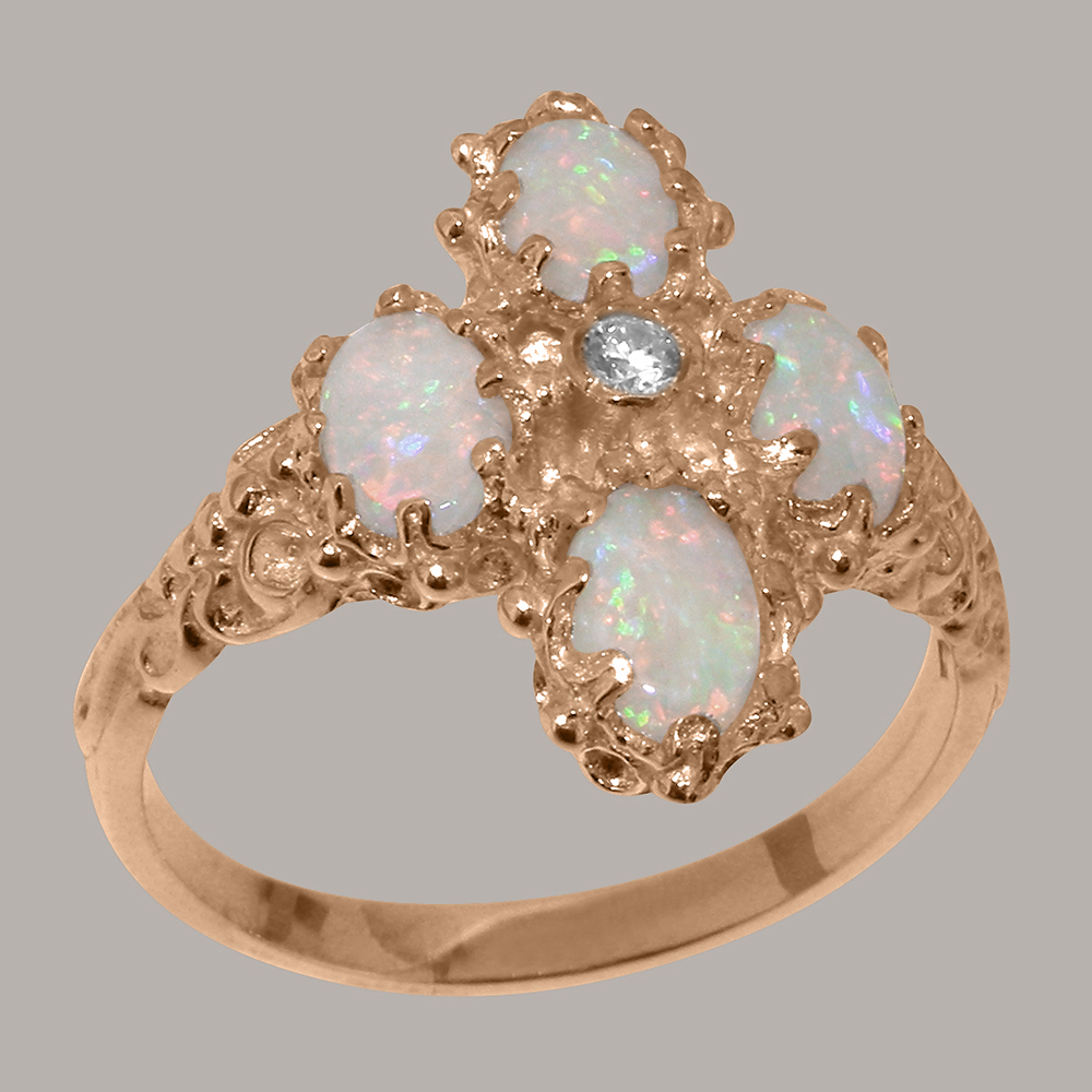 Rose Gold Cubic Zirconia & Opal Womens Cluster Ring
