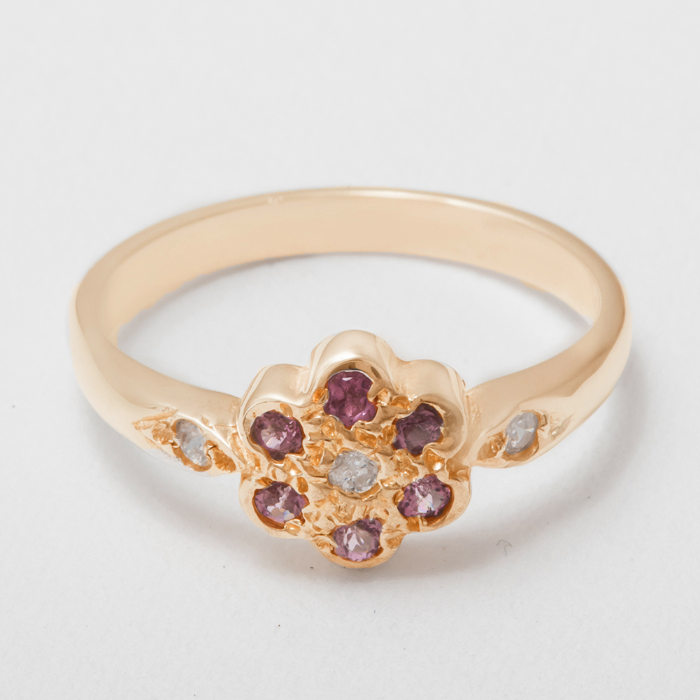 Rose Gold Cubic Zirconia & Pink Tourmaline Womens Cluster Ring