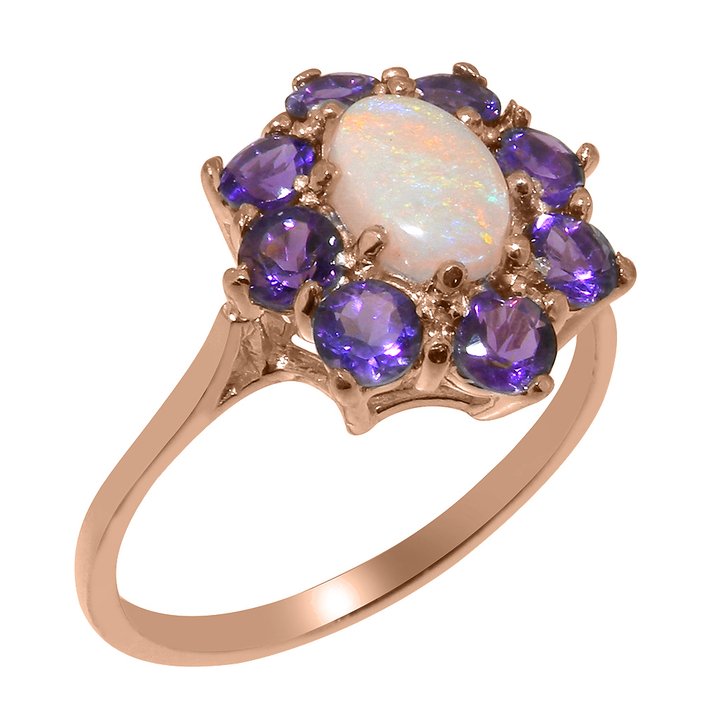 Rose Gold Natural Opal & Amethyst Womens Cluster Ring