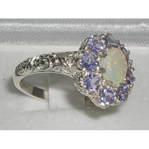 Solid 925 Sterling Silver Natural Opal & Tanzanite Womens Cluster Ring