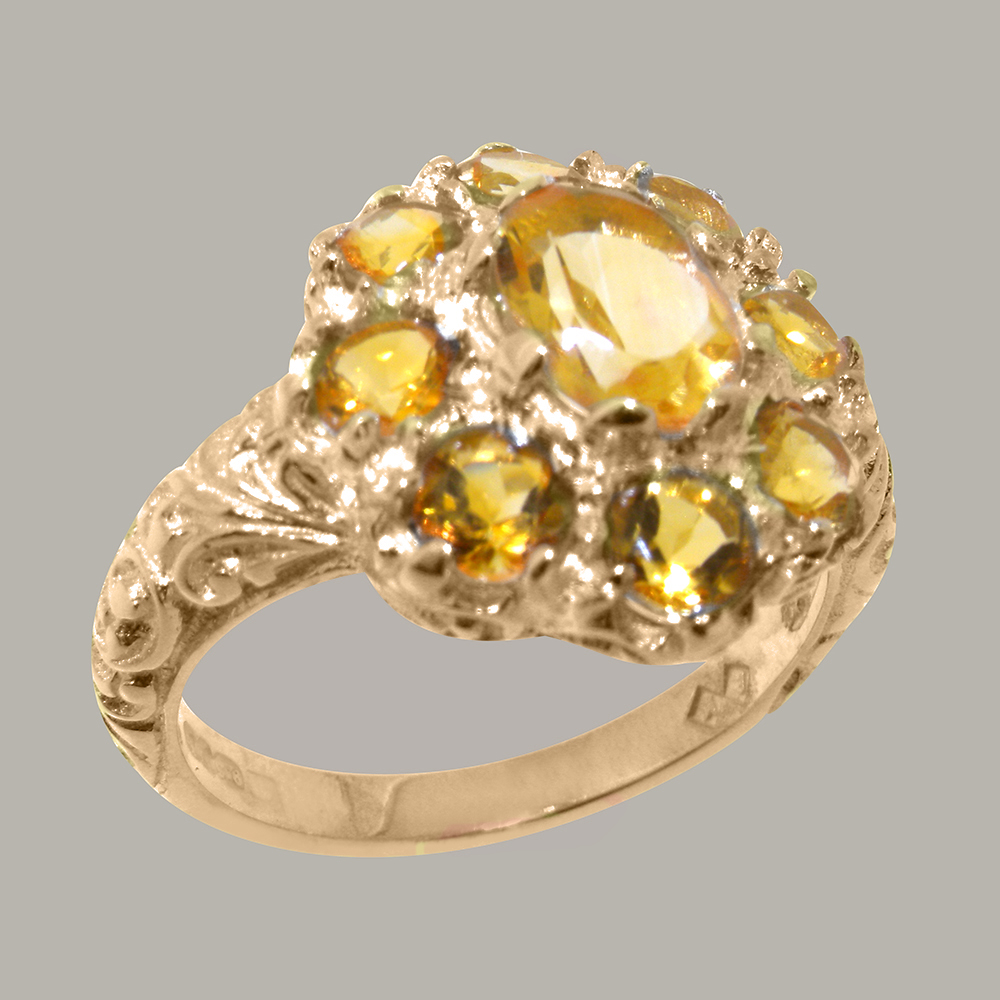 Solid Rose Gold Natural Citrine Womens Cluster Ring