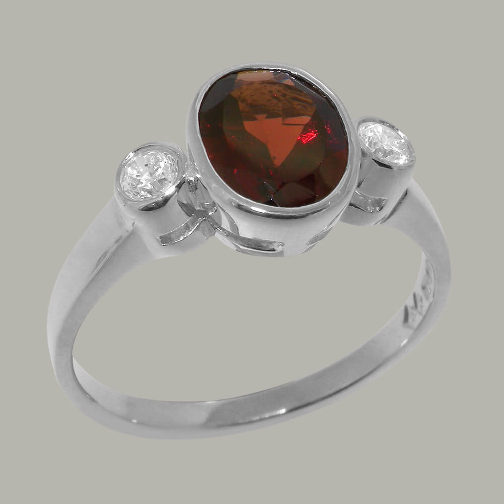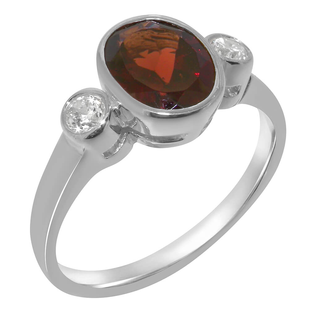 Solid White Gold Natural Garnet & Cubic Zirconia Womens Trilogy Ring