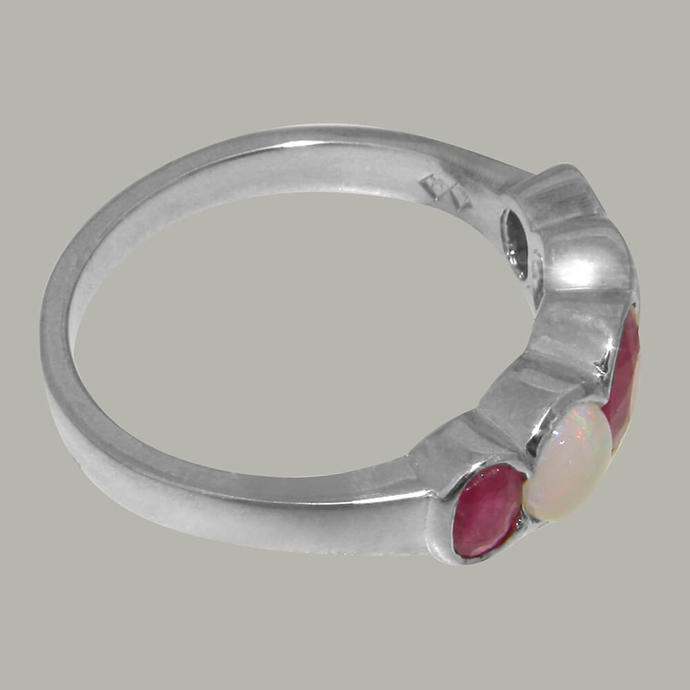 Solid White Gold Natural Ruby & Opal Womens Band Ring