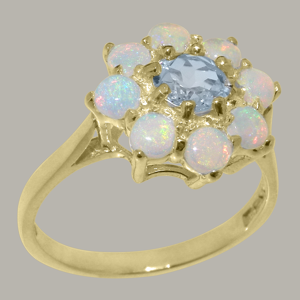 Solid Yellow Gold Natural Aquamarine & Opal Womens Cluster Ring