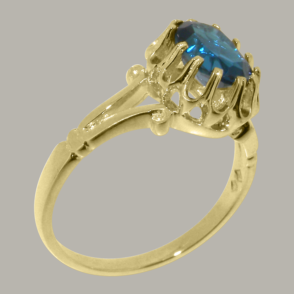Solid Yellow Gold Natural London Blue Topaz Womens Solitaire Ring