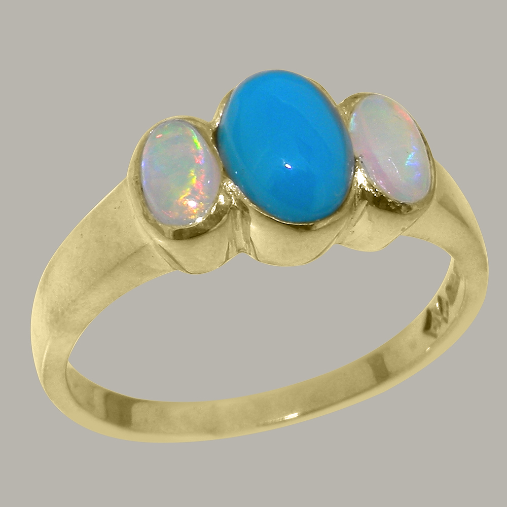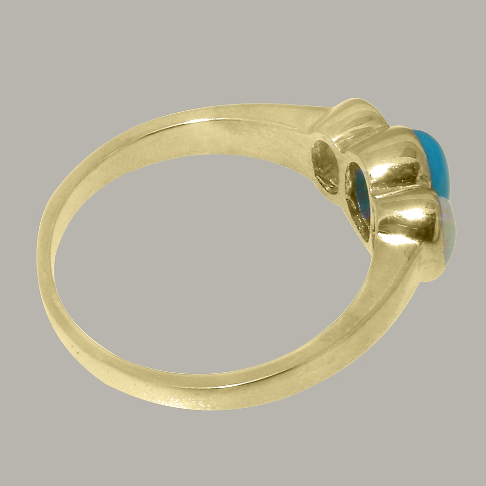 Solid Yellow Gold Natural Turquoise & Opal Womens Trilogy Ring