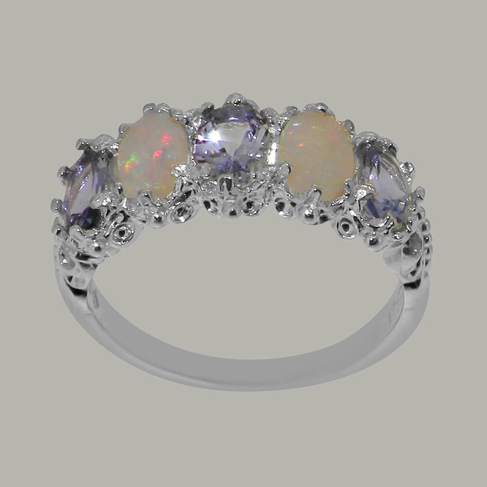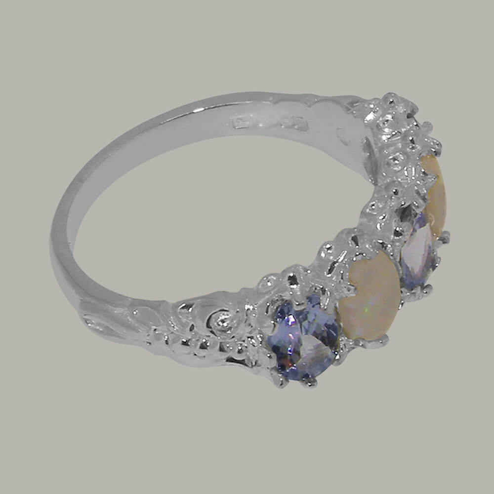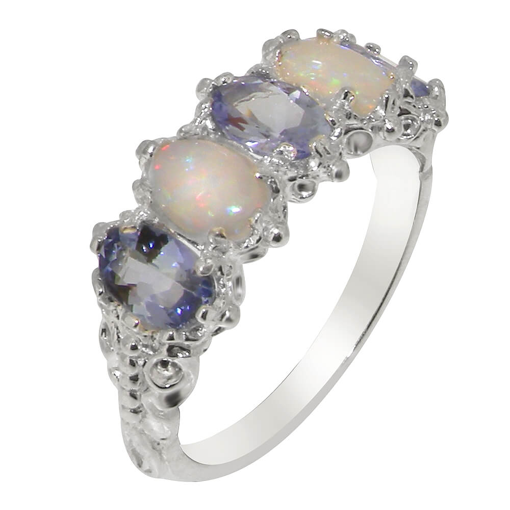 White Gold Natural Tanzanite & Opal Womens Eternity Ring