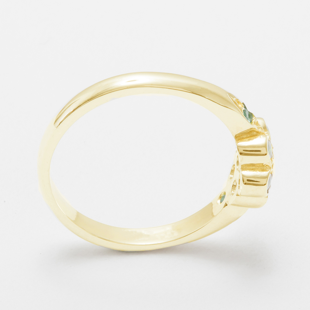 Yellow Gold Natural Emerald & Opal Womens Cluster Ring