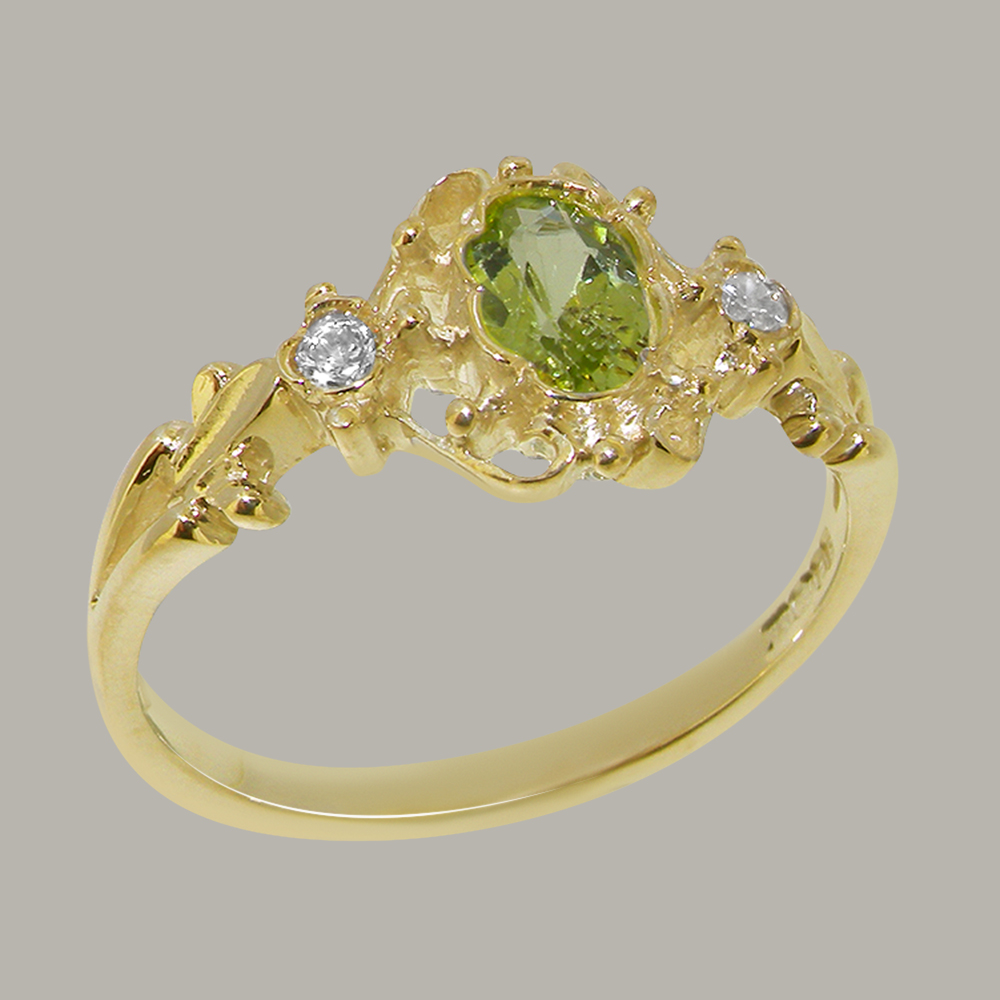 Yellow Gold Natural Peridot & Diamond Womens Trilogy Ring