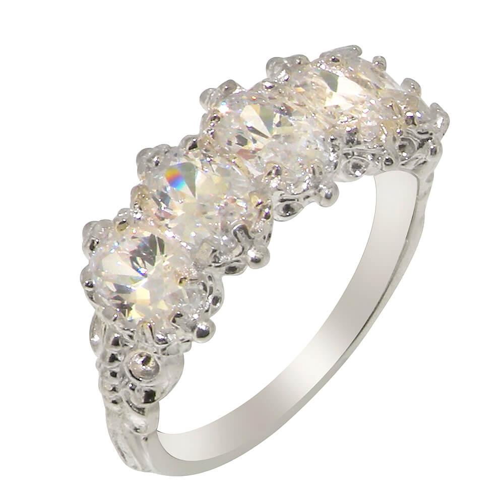 A stunning selection of Cubic Zirconia set within this delightful English Victorian style Sterling Silver setting. Each CZ measures approx 6x4mm (0.24″x0.16″), is securely claw set, and the setting has a nice solid feel with a substantial shank.
