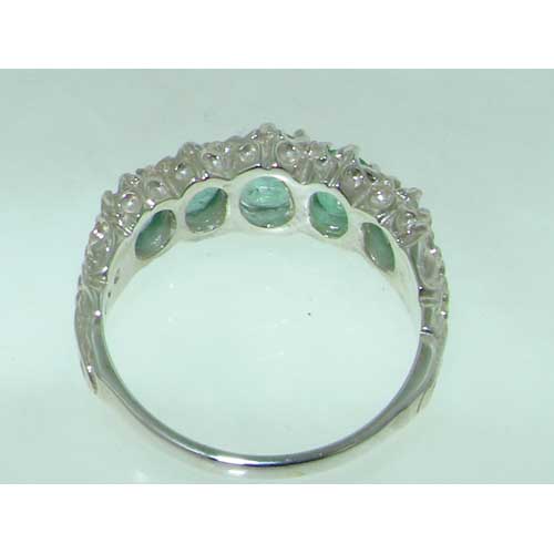 Luxury Ladies Victorian Style Solid Hallmarked Sterling Silver Genuine Emerald Ring