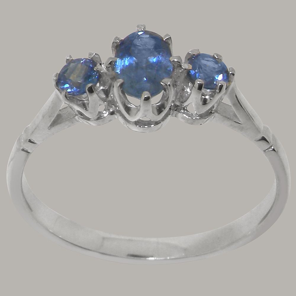 Solid 925 Sterling Silver Natural Sapphire Womens Trilogy Ring