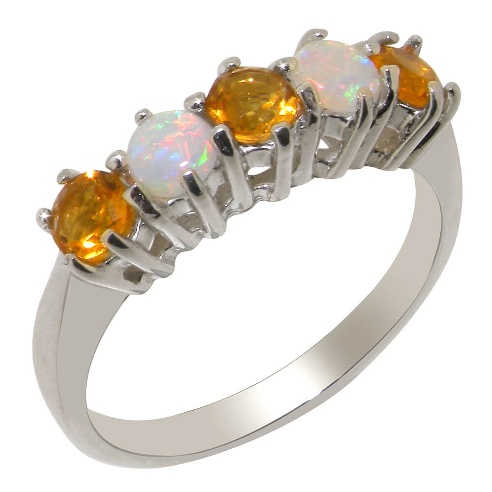 White Gold Natural Citrine & Opal Womens Eternity Ring
