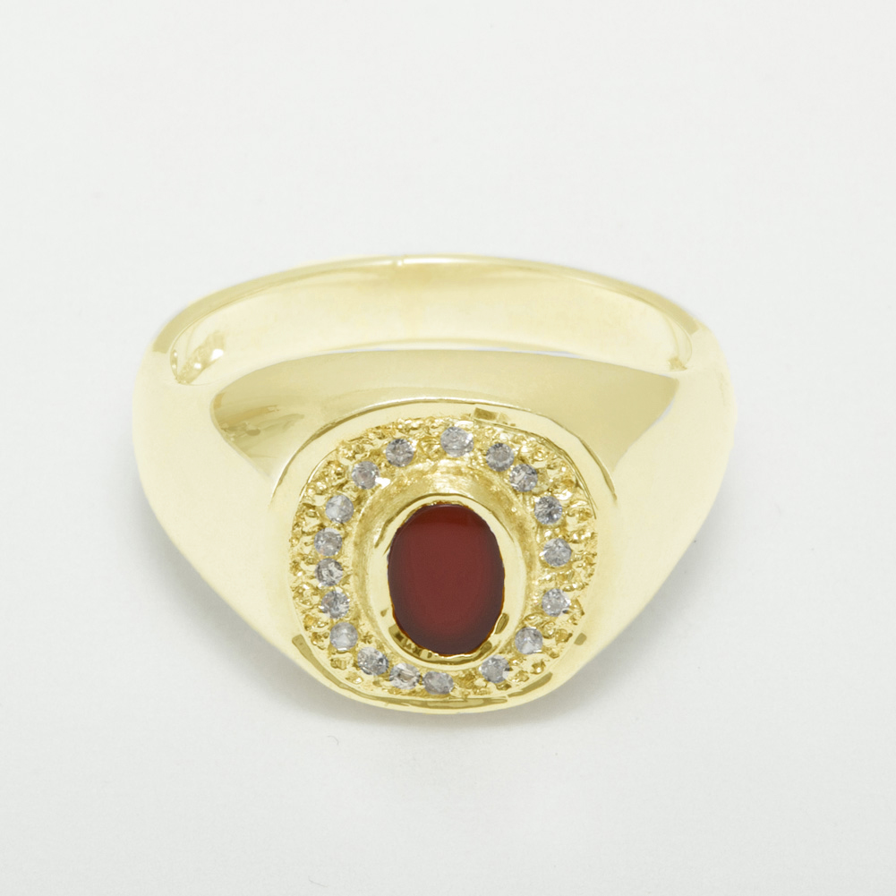 Yellow Gold Natural Carnelian & Cubic Zirconia Mens Signet Ring